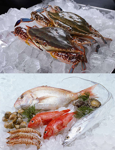 在海鮮市場(chǎng)主要在海鮮上鋪一層冰,是海鮮溫度降低,起到保鮮作用